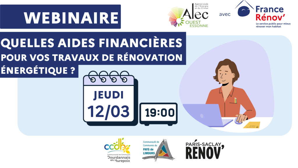 Tous les ans, les aides changent. Il y a de nouveaux dispositifs qui apparaissent et d’autres qui disparaissent. Ce webinaire, animé par l’ALEC Ouest Essonne, votre espace Conseil France Rénov’, vous permettra d’identifier en un clin d’œil les principales aides à l’échelle locale ou nationale dont vous pourrez bénéficier.