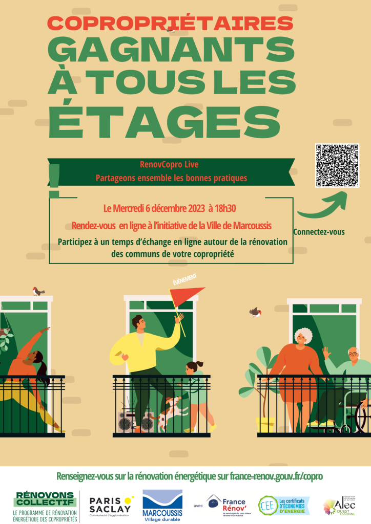 La Commune de Marcoussis et l’Agence locale de l’énergie et du climat Ouest Essonne vous invitent à une soirée d’échange en ligne sur la thématique de la rénovation énergétique en copropriété. Cette réunion se déroulera le mercredi 6 décembre 2023 à 18h30.