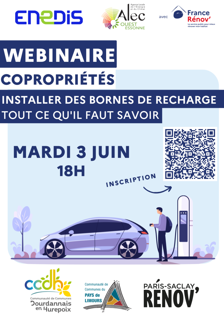 Les véhicules électriques gagnent du terrain et vos copropriétés sont-elles prêtes à suivre le mouvement ? Rejoignez ce webinaire animé par les conseillers France Rénov’ de l’ALEC Ouest Essonne et des experts Enedis pour explorer des solutions concrètes d’installation de bornes de recharge, alliant modernisation et engagement vers une mobilité à faible impact carbone.