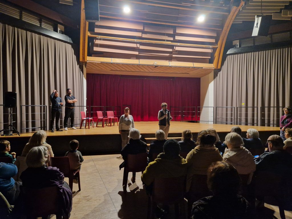 Les échanges ont été riches et les réactions spontanées grâce au talent des deux comédiens qui ont su mettre à l’aise le public en jouant avec beaucoup d’humour et de subtilité des situations très délicates : un foyer en situation de précarité énergétique, un conseil de copropriétaires, un foyer qui a de mauvaises habitudes de consommation.. Des situations concrètes qui ont fait réagir : « Avec toutes les aides existantes à la rénovation énergétique, on ne sait plus à qui s’adresser ! » a lancé un spectateur, soulignant la complexité des démarches. D’autres ont souligné la tension entre l’importance des écogestes et le sentiment de culpabilité que cela peut générer pour chacun.