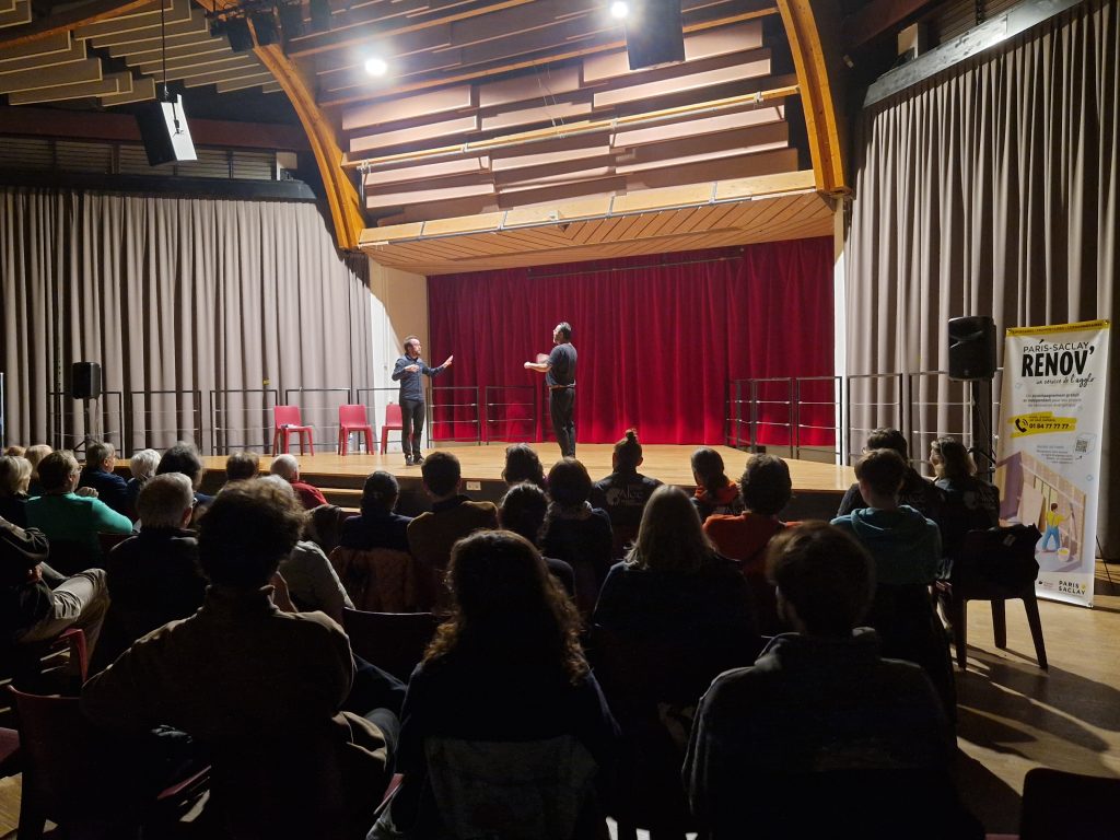 À l’issue de chaque scène, les conseillers de France Rénov’ et de Paris-Saclay Rénov’ sont intervenus pour expliquer les dispositifs d’aide disponibles et répondre aux questions. Ils ont fourni des informations essentielles pour mieux orienter les participants dans leurs démarches.